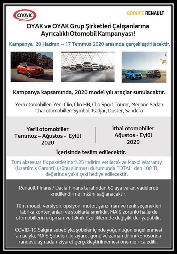 ÇALIŞANLARIMIZA ÖZEL OTOMOBİL SATIŞ KAMPANYASI Detaylar için aşağıdaki başlıklara tıklayınız. 2020 OYAK GRUP ŞİRKETLERİ OTOMOBİL KAMPANYASI FİYAT LİSTESİ2020 OYAK OTOMOBİL KAMPANYASI ARAÇ EKİPMAN VE TEKNİK ÖZELLİKLERİSTANDART TASARRUF KAMPANYASI KREDİ GERİ ÖDEME TABLOSUKREDİNİ ŞİMDİ AL 2021’DE ÖDEMEYE BAŞLA KAMPANYASI KREDİ GERİ ÖDEME TABLOSU
